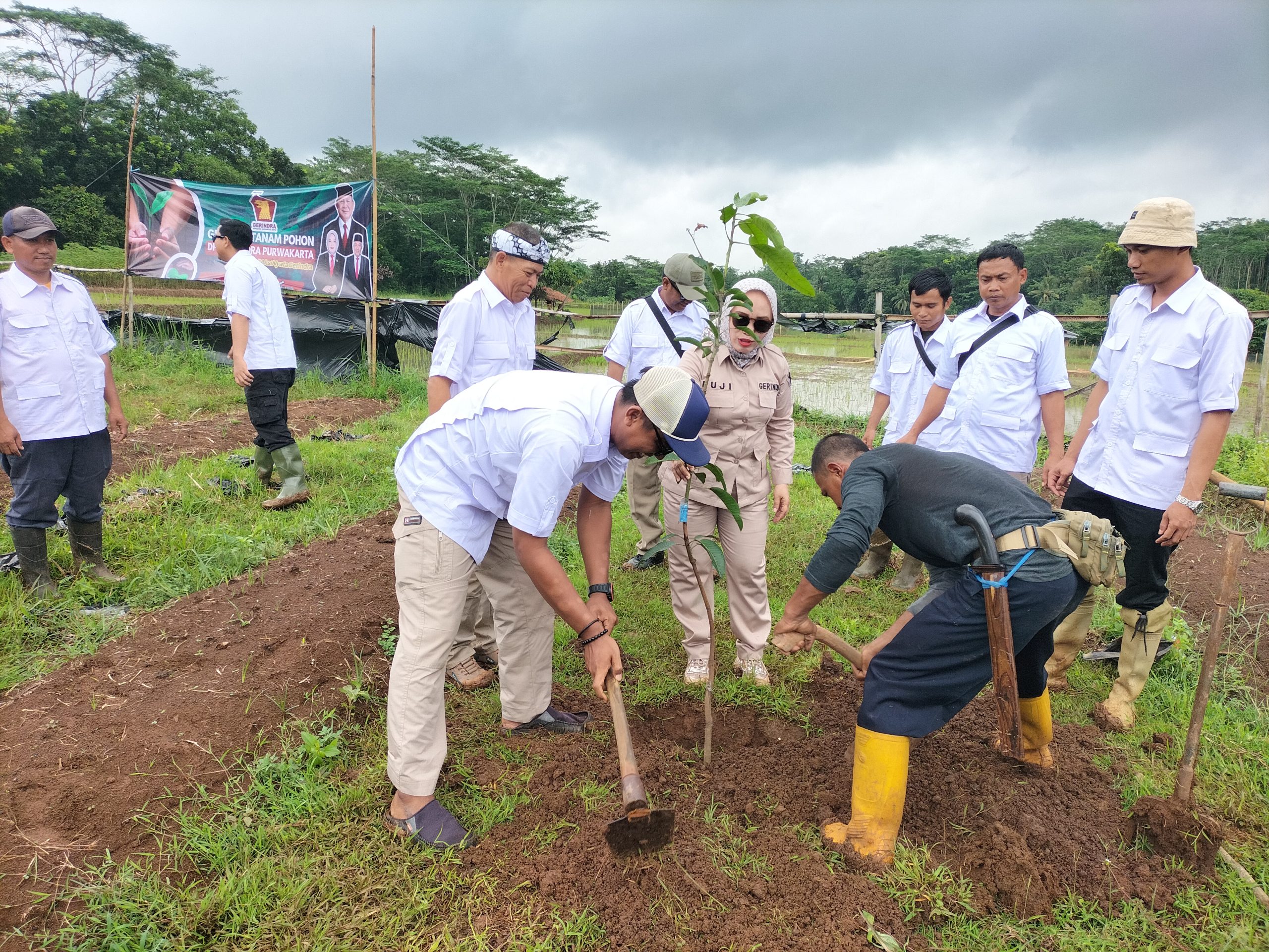 PURWAKARTA | Ketua Dewan Perwakilan Rakyat Daerah (DPRD) Kabupaten Purwakarta, Sri Puji Utami, bersama Kader Partai Gerindra Kabupaten Purwakarta dan Satgas Tani Merdeka Indonesia melaksanakan kegiatan penanaman bibit pohon di wilayah Desa Cipancur, Kecamatan Cibatu, Rabu (31/12/2025).