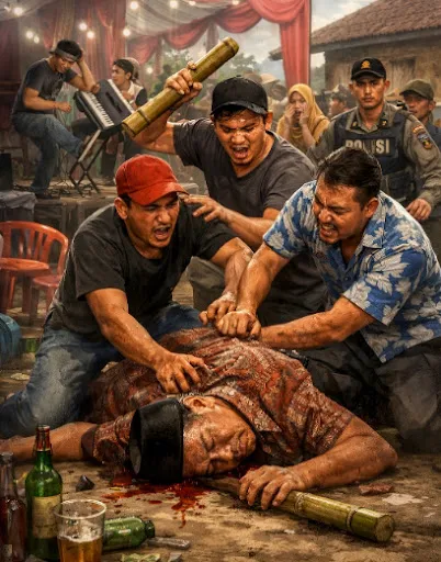 Setelah penolakan itu, korban keluar dari tenda. Tak lama kemudian, terjadi keributan di dalam tenda antara rekan pelaku dan pemain organ tunggal. Situasi semakin memanas ketika tiga orang pelaku mengikuti korban dan melakukan pemukulan menggunakan potongan bambu yang mengenai bagian punggung dan kepala korban.